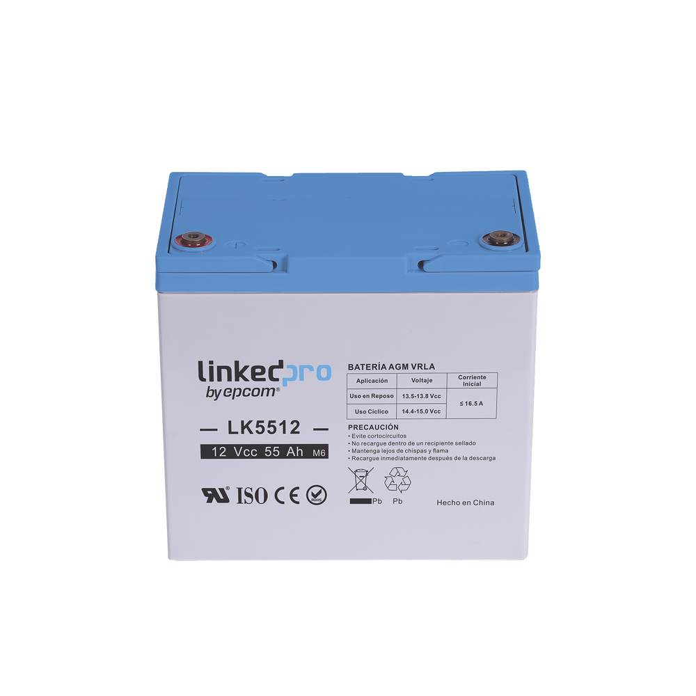 La serie de baterías LINKEDPRO BY EPCOM, están diseñadas con tecnología AGM-VRLA (Fibra de vidrio absorbente, con válvulas de regulación), placas de alto rendimiento y electrólito para proporcionar una salida de energía adicional. Las baterías de la serie LINKEDPRO BY EPCOM son baterías de respaldo para equipos electrónicos, con una vida útil de diseño flotante de 5 años a 25°C, están aprobadas por UL (MH62092).
