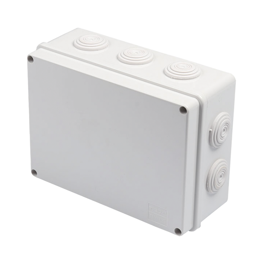 Caja Derivación-Conexión de Plástico (140 X 190 X 76 mm) con 10 Glándulas de Goma. Para Instalaciones Comerciales, Residenciales e Industriales. Incluye Tornillería para su Tapa. Funciona También como Registro.