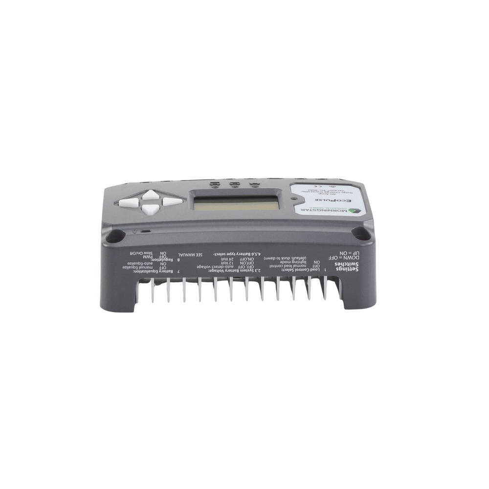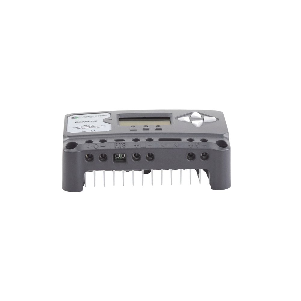 El EcoPulse es un regulador de carga solar con modulación de la magnitud del impulso (PWM) perteneciente a la gama de productos Morningstar Essentials™, que ofrece funciones esenciales de regulación autónoma de la batería. Este controlador es fácil de usar y se ha diseñado para aplicaciones de consumo domésticas y recreativas. Las versiones con y sin medidor de este producto se venden con corrientes máximas de carga de 10, 20 o 30 amperios para sistemas de batería de 12 o 24 voltios.