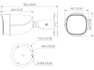 - Dimensiones del producto: 166,4 mm × 69,7 mm × 70,0 mm