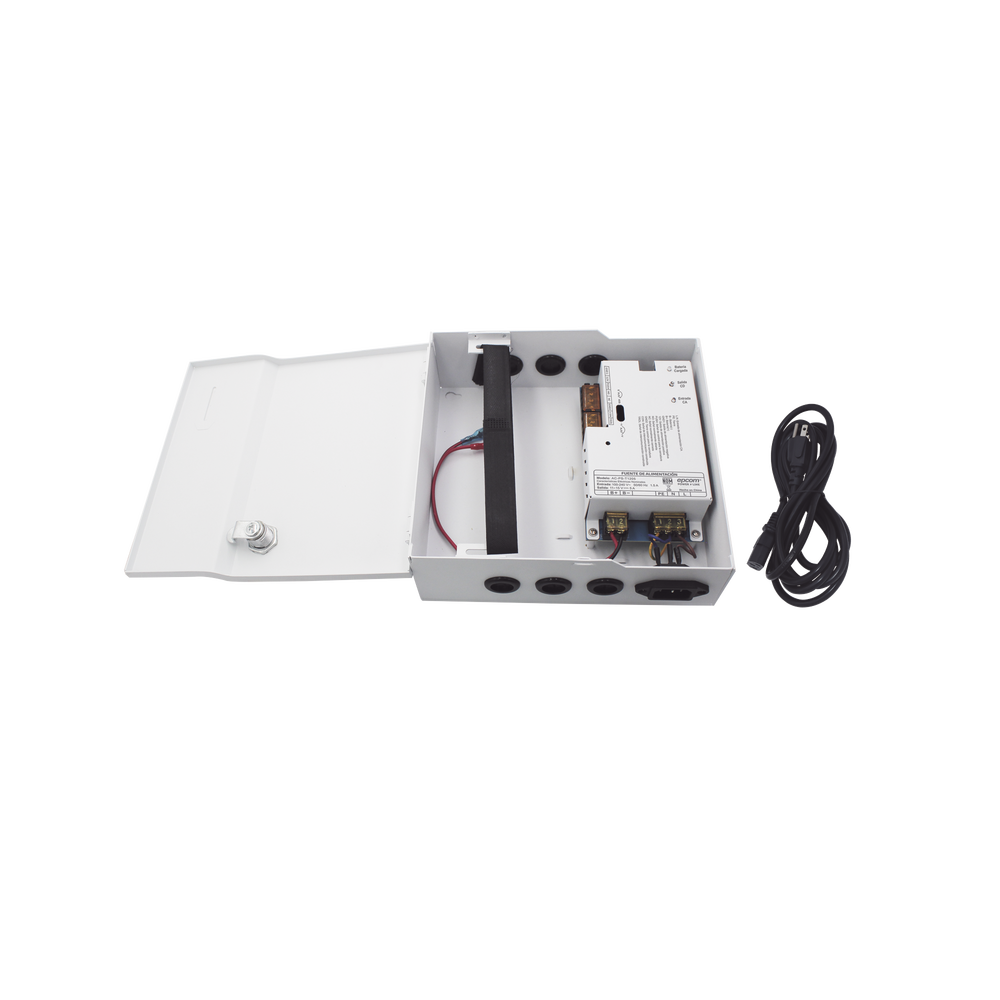 Fuente de Poder / 1 Salida 11-15 Vcc / 5 A / Temporizador Integrado / Con Capacidad de Batería de Respaldo / Requiere Batería / Aplicaciones en sistemas de control de Acceso
