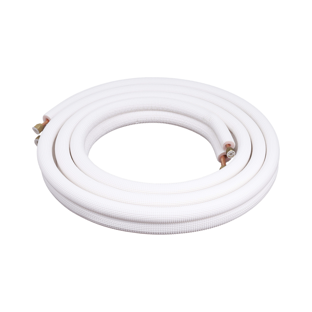 Kit de tuberías, está diseñado para ampliar las tuberías de los minisplits cuando el evaporador y el condensador no cuentan con la distancia necesaria de las tuberías. Cuenta con puntas de cobre y tuercas para un mejor agarre. Tiene una longitud de 4 m y está elaborada de aluminio, es apta para efectuar de manera correcta el ciclo de refrigeración.