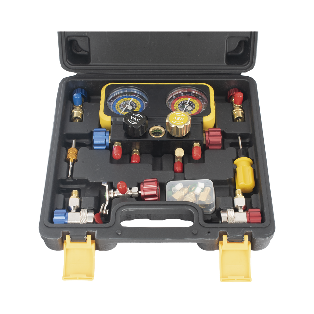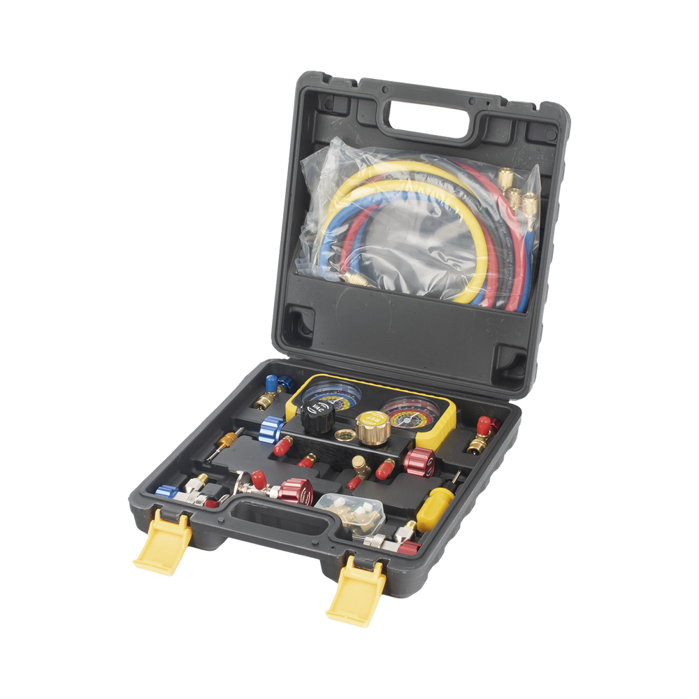 - Este juego de medición de colector de CA es ideal para mantenimiento profesional de HVAC