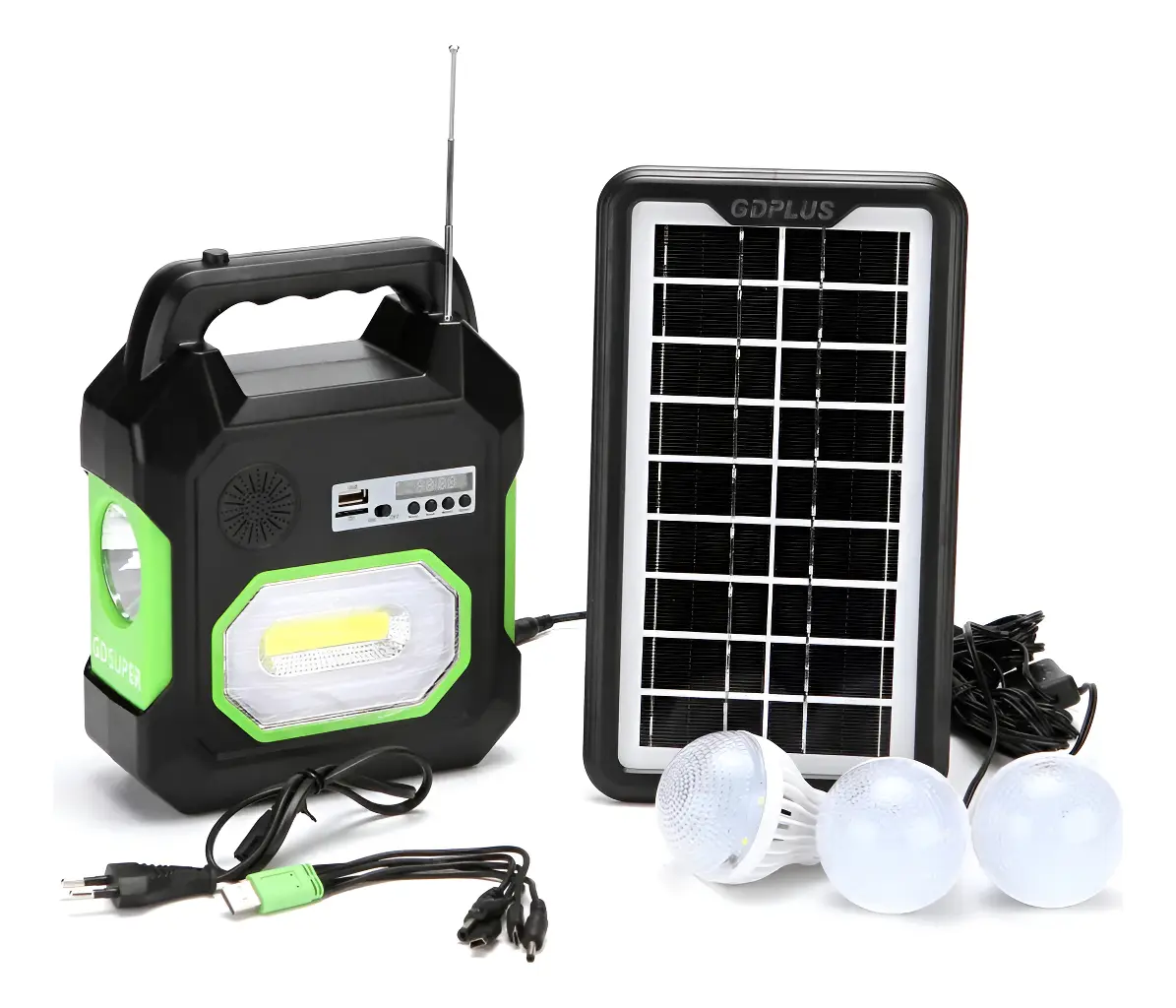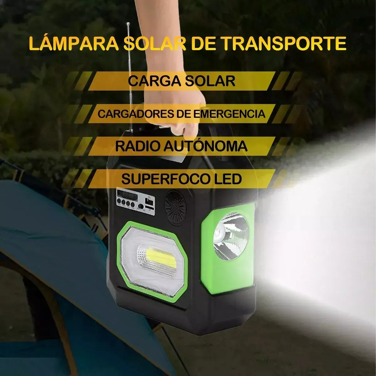 LÁMPARA DE MANO SOLAR MULTIUSOS: Esta lámpara de mano solar portátil tiene una linterna LED incorporada y 3 bombillas con interruptores independientes y cables USB para brindar iluminación con bajo consumo de energía. Equipado con salida DC/USB para cargar dispositivos de pequeña capacidad como teléfonos móviles, libros electrónicos, consolas de juegos, cámaras y MP4. La fuente de alimentación de respaldo de emergencia perfecta para el hogar, los viajes y el campamento. Lámpara portátil de mano de 4500 mAh con panel solar y batería de alta calidad que se puede ciclar más de 3000 veces. Esta linterna solar portátil cuenta con un panel solar de 5 W que puede alimentar luces LED y teléfonos móviles. Los sistemas de iluminación portátiles con paneles solares son ideales para uso doméstico y exterior. 2 métodos de carga: nuestro sistema de iluminación con paneles solares para exteriores ofrece 2 métodos de carga. Carga de panel solar de 5W y carga de CA. Con bombilla, fácil de transportar, diseño compacto y fácil de instalar. Salida a prueba de polvo, CC y USB, segura y confiable. Embalaje integrado, transporte conveniente.